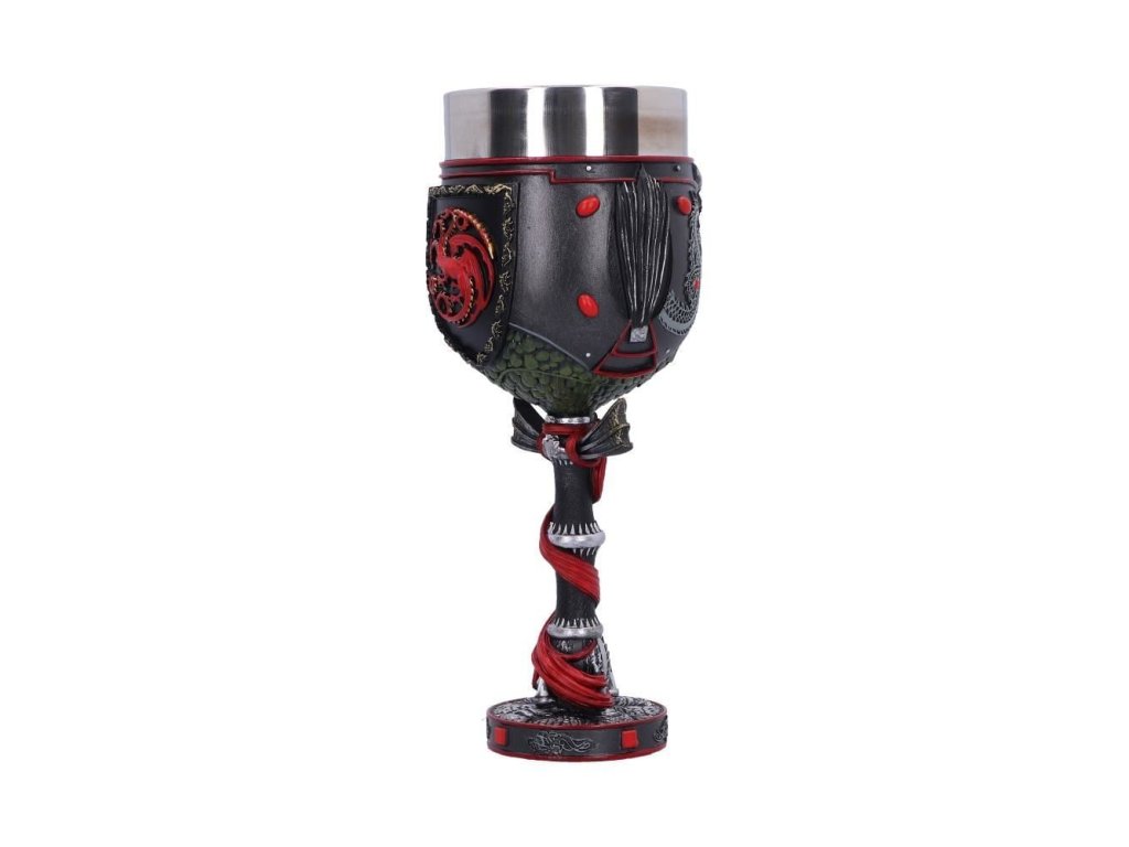 Připij na slávu a úspěchy Daemona Targaryena spolu s krásným ručně malovaným pohárem, který zdobí jeho rodový znak z populární fantasy série House of the Dragon (Rod draka) od Game of Thrones (Hra o trůny). Udělej radost sobě nebo ostatním dračím jezdcům tímto originálním společníkem! Nerezová vnitřní část je vyjímatelná, což umožňuje jeho snadnou údržbu. Pohár není vhodný do myčky nádobí ani mikrovlnné trouby!