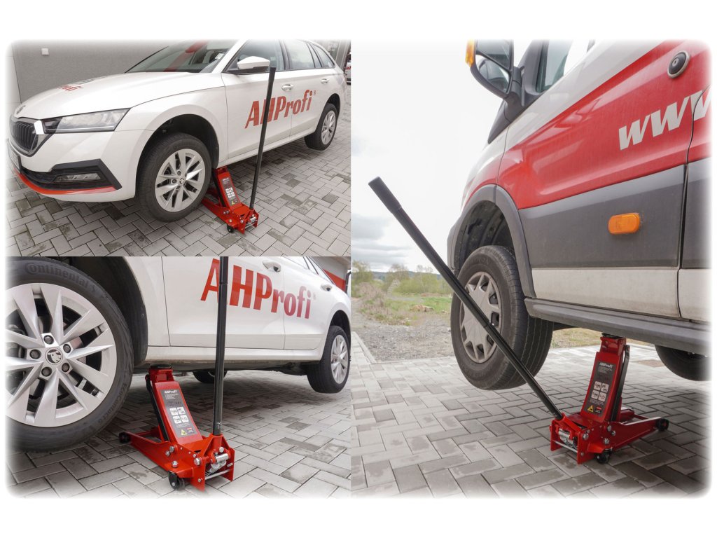 Zvedák bez problému a rychle zvedne nejen osobní automobily, ale nezalekne se ani SUV a dodávek.