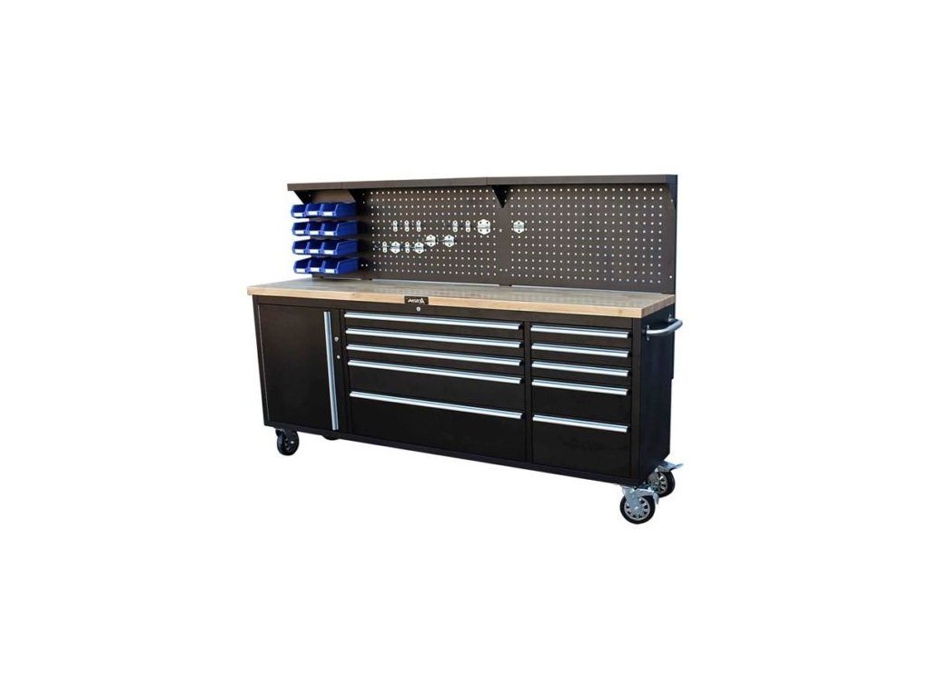 Vozík obsahuje celkem 10 uzamykatelných zásuvek s kuličkovými ložisky a boční skříňkou.