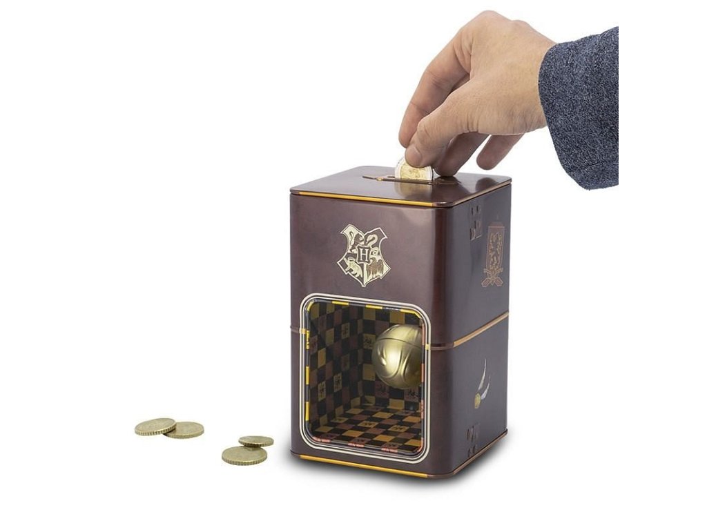 V kovové pokladničce s famfrpálovou Zlatonkou ochráníte své úspory ještě lépe než u Gringottovy banky! Vhoďte minci a sledujte, jak zmizí, aniž by se vznášející se Zlatonka pohnula. Skvělá pokladnička pro milovníky a fanoušky příběhů Harry Pottera!