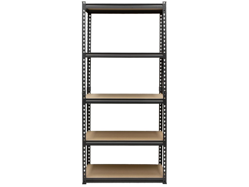 Výškově nastavitelný policový regál, 5 polic, 815 x 465 x 1825 mm, nosnost až 1000 kg. Kovový rám s perforovanými sloupky, MDF desky.