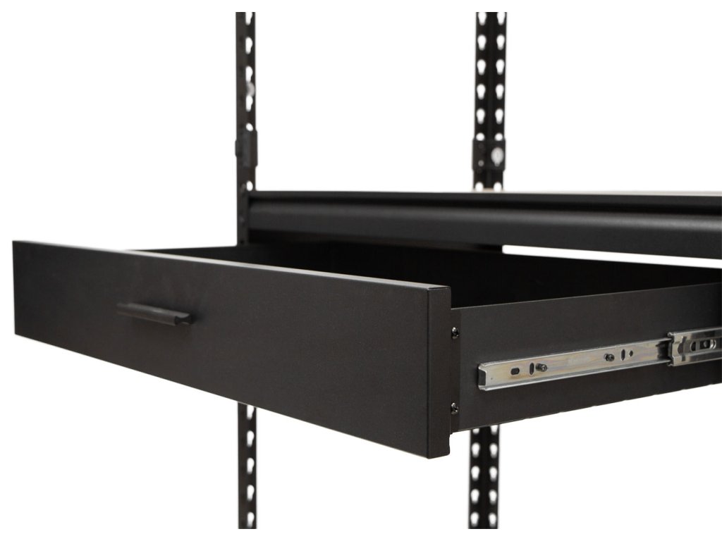 Díky kombinaci otevřených polic, uzavíratelného úložného prostoru a zásuvky poskytuje regál široké možnosti organizace.