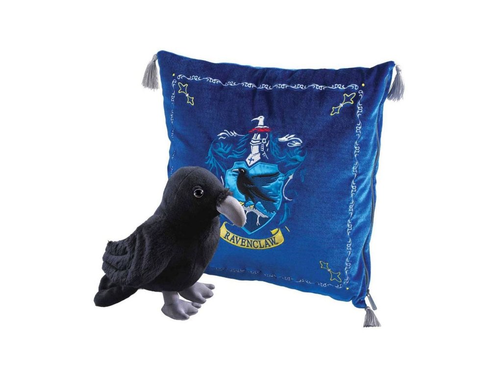 Modrý polštář se znakem Havraspáru ukrývá tajemství, uvnitř se může schovávat plyšový havran, patron této bradavické koleje! Hezká dárková sada pro milovníky kouzelnického světa Harry Pottera od J. K. Rowlingové.