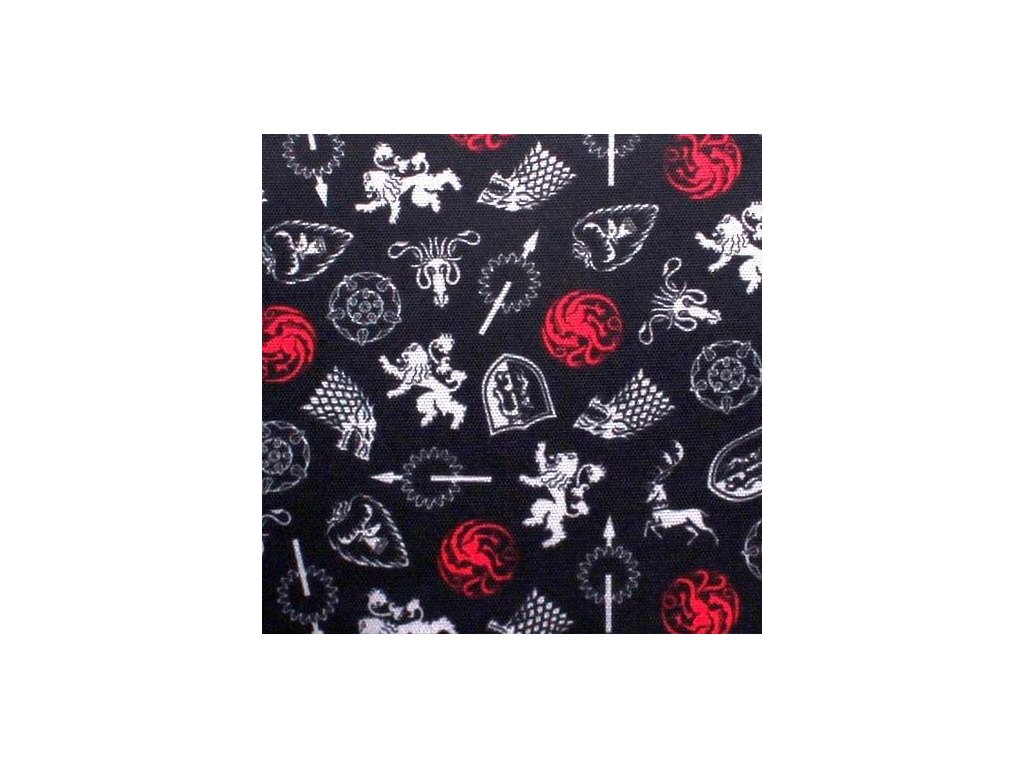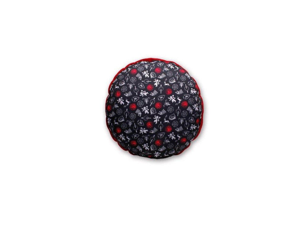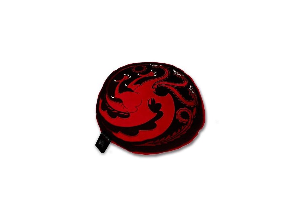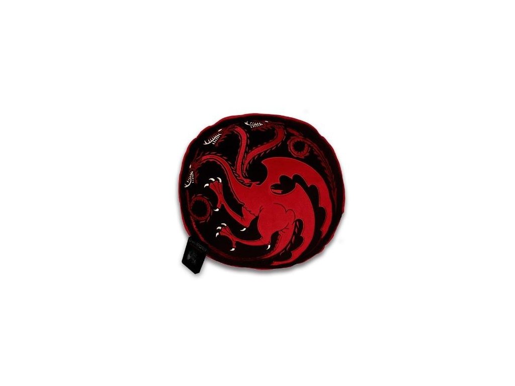 Stylový polštář s výšivkou vhodný pro jakýkoli trůn nebo třeba na posezení k čaji. Polštář zdobí svrchu erb rodu Targaryenů z populární fantasy série Game of Thrones - Hra o trůny, z opačné strany pak malé erby významných rodů Západozemí.