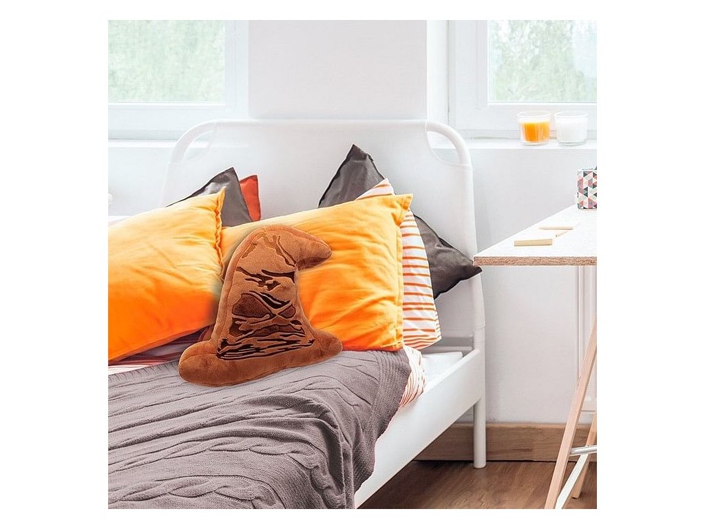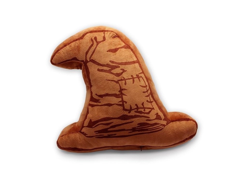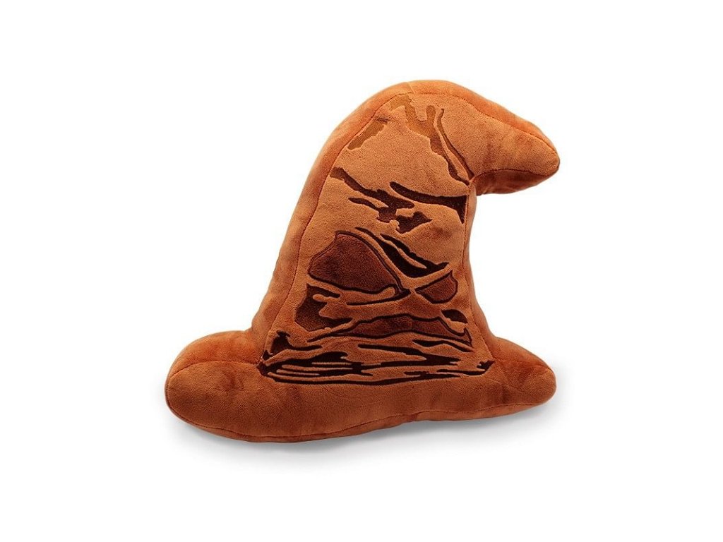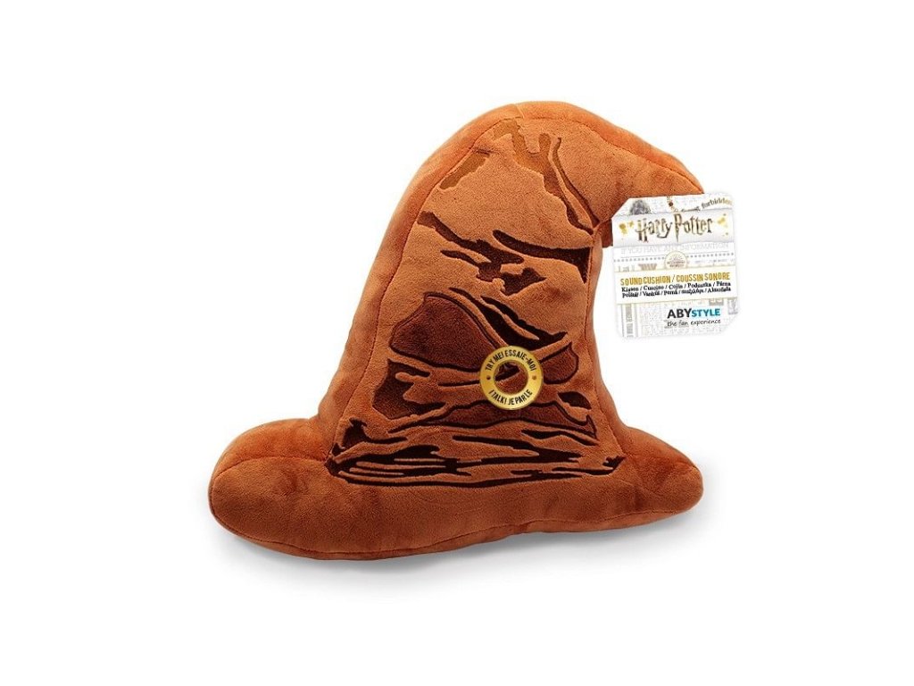 K jaké koleji náležíte? Bude to Nebelvír, Mrzimor, Havraspár nebo snad Zmijozel? Na tuto zapeklitou otázku vám odpoví jedině moudrý klobouk, tentokrát v podobě měkkého polštářku – stačí jej zmáčknout. Polštář po stisknutí pronese jméno jedné ze čtyř bradavických kolejí (umí to v angličtině a fanzouzštině, mluvení lze případně zcela vypnout). Mluvící zařízení vyžaduje 2 AAA baterie (jsou součástí balení a lze je vyměnit).