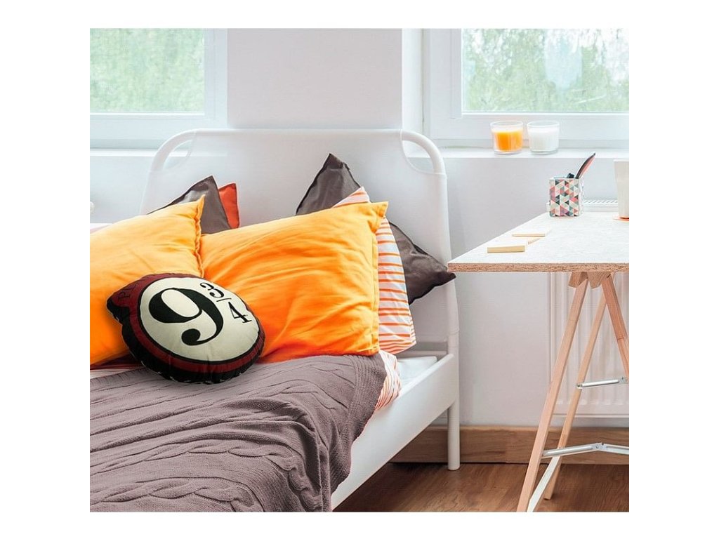 Skvělý polštář na doma nebo třeba na cestu Bradavickým expresem do magického světa Harryho Pottera! Polštář je tvarovaný do podoby symbolu slavného Nástupiště 9 a 3/4, odkud vlak s Harrym a jeho přáteli vyjížděl do Bradavic.