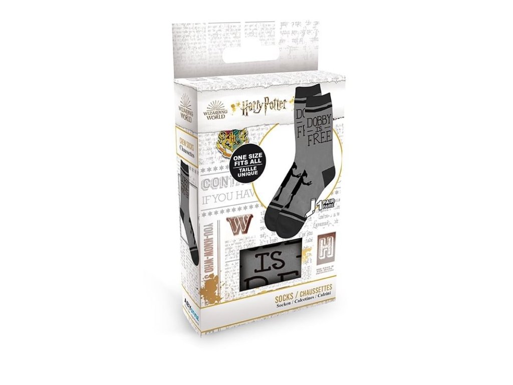 Dobby se stal svobodným, když mu Harry Potter daroval svou ponožku. S hezkými ponožkami s domácím skřítkem Dobbym budete volní i vy! Balení obsahuje jeden pár ponožek univerzální velikosti.