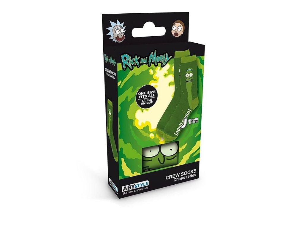 Originální okurkové ponožky s Pickle Rickem pro fanoušky amerického kresleného seriálu Rick and Morty. Ponožky mají univerzální velikost, balení obsahuje jeden pár ponožek.