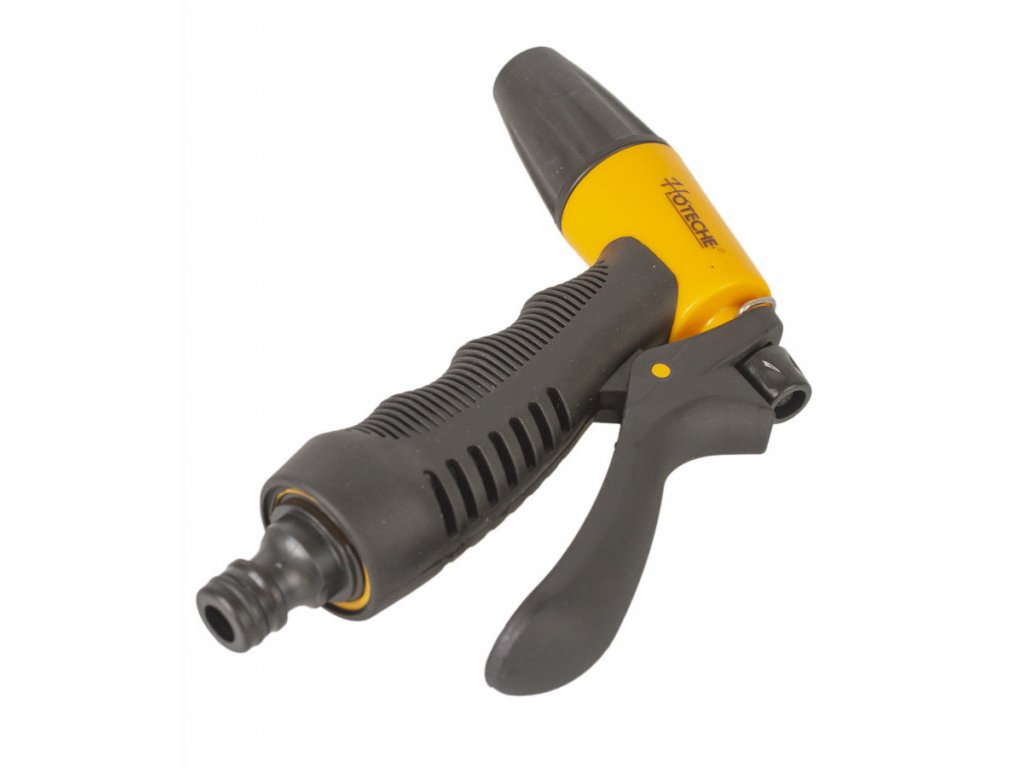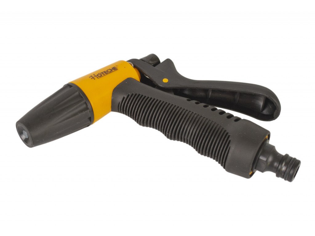 Postřikovací pistole značky Hoteche s rychlospojkou 1/2" pro snadné a rychlé připojení zahradní hadice. Jedná se o neocenitelného pomocníka na každé zahrádce.