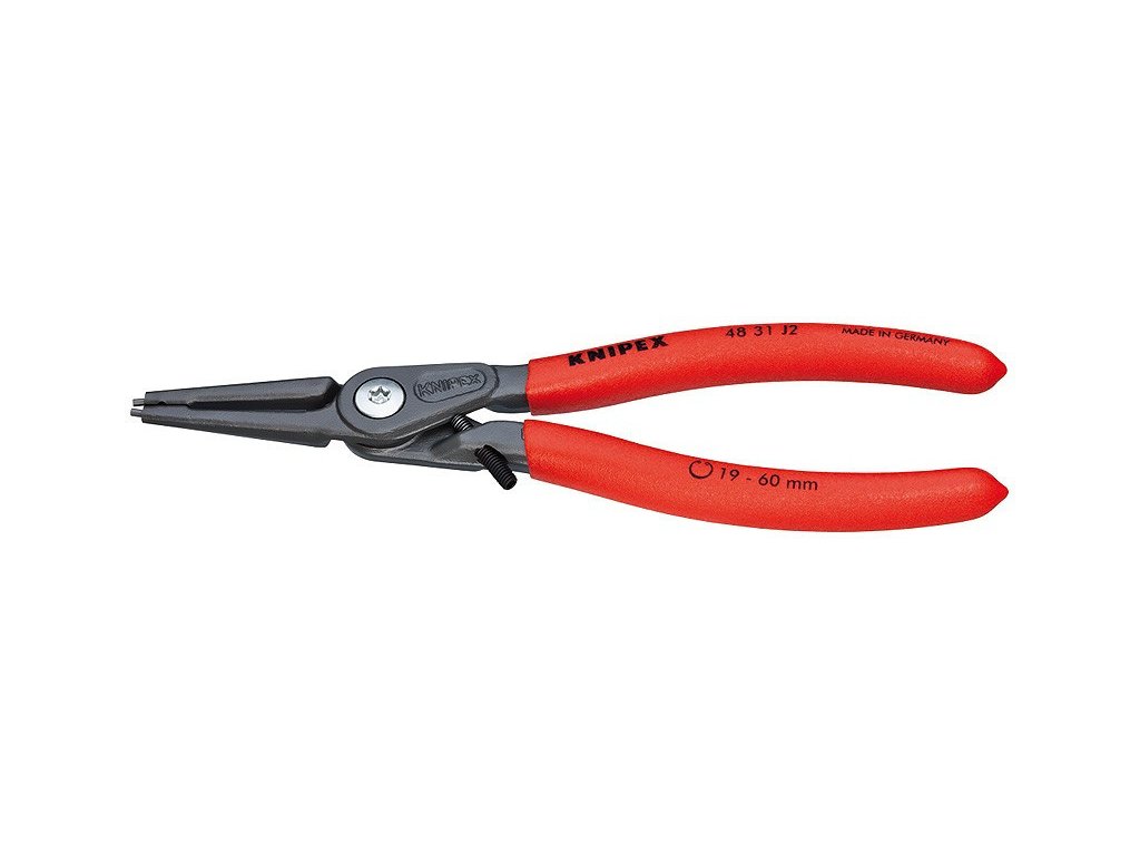 Vnitřní přímé kleště o délce 225 mm na pojistné kroužky od německého výrobce Knipex. Rukojeť potažena plastem, který brání sklouzávání. Snadná a bezpečná montáž díky přesně lícujícím, nasazeným a nalisovaným hrotům z vysoce zhuštěné pružinové oceli poskytují vysokou míru zabezpečení proti přetížení, např. při demontáži uvázlých těsnicích kroužků. Velké dosedací plochy a poloha hrotů znesnadňují odskočení kroužků. Hroty jsou při jednorázovém přetížení o 30 % stabilnější oproti běžným kleštím, současně umožňují lepší přístupnost při montáži. Při dynamickém zatížení vydrží hrot až 10 x déle.