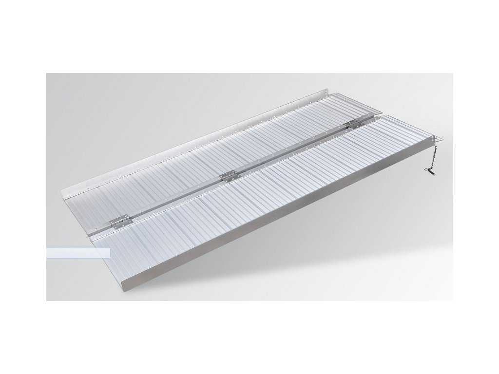 Hliníková skládací rampa nejen pro invalidní vozíky. Nájezd je jednoduše složitelný a zajistitelný aretačními kolíky. Šířka rampy je 73 cm a nosnost 272 kg.