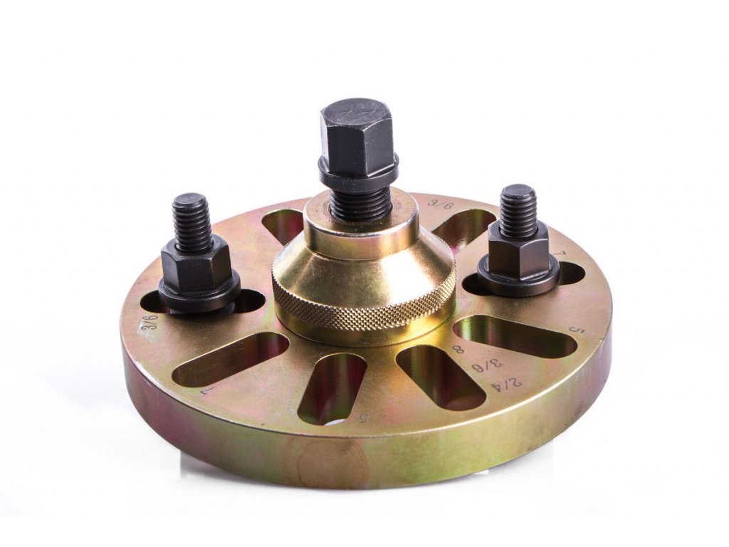 Aretační přípravek pro řemenice s průměrem od 70 do 100 mm, pro vozy VAG, Opel, Ford, BMW, Mercedes a pro francouzská a japonská vozidla.