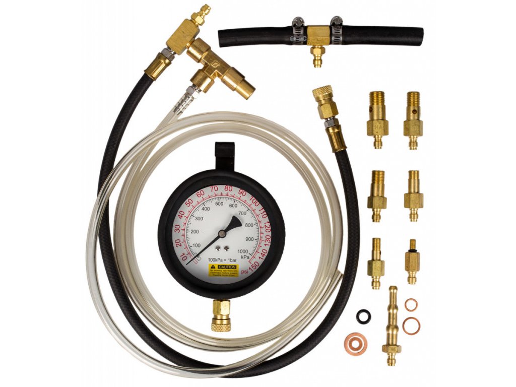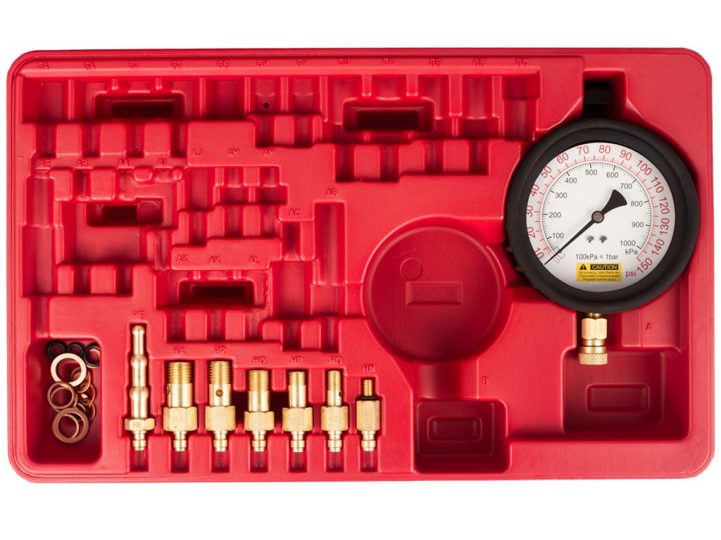 Přístroj na kontrolu vstřikování paliva, pro většinu japonských vozů. 3-1/2" měrka s dvojitými záznamy (0-145 PSI a 0-1000 KPA).