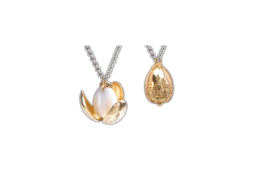 Jedním z úkolů Poháru tří kouzelníků (viz. kniha Harry Potter a Ohnivý pohár) bylo získání zlatého vejce, které chránil opravdický drak. Když bylo toto vejce otevřeno pod vodou, ozývala se z něj líbezná píseň jezerních lidí popisující další z úkolů nebezpečného turnaje. Tento zdobený přívěsek dračího vejce je pozlacený, opatřený řetízkem. Stejně jako orginál, podle nějž je zhotoven, jej lze pootočením rozevřít. Součástí je drobná dřevěná skříňka se zrcátkem, v níž je možno náhrdelník vystavit. Jedná se o filmovou dekorační repliku, při běžném nošení se může opotřebit či zoxidovat.