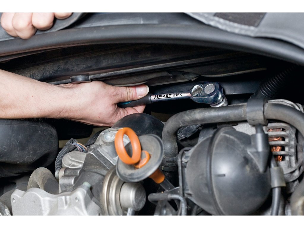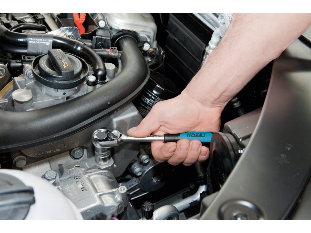 Kvalitní ráčna od německého výrobce HAZET, chrom-vanadium, max. točivý moment 300 Nm, délka 199 mm.