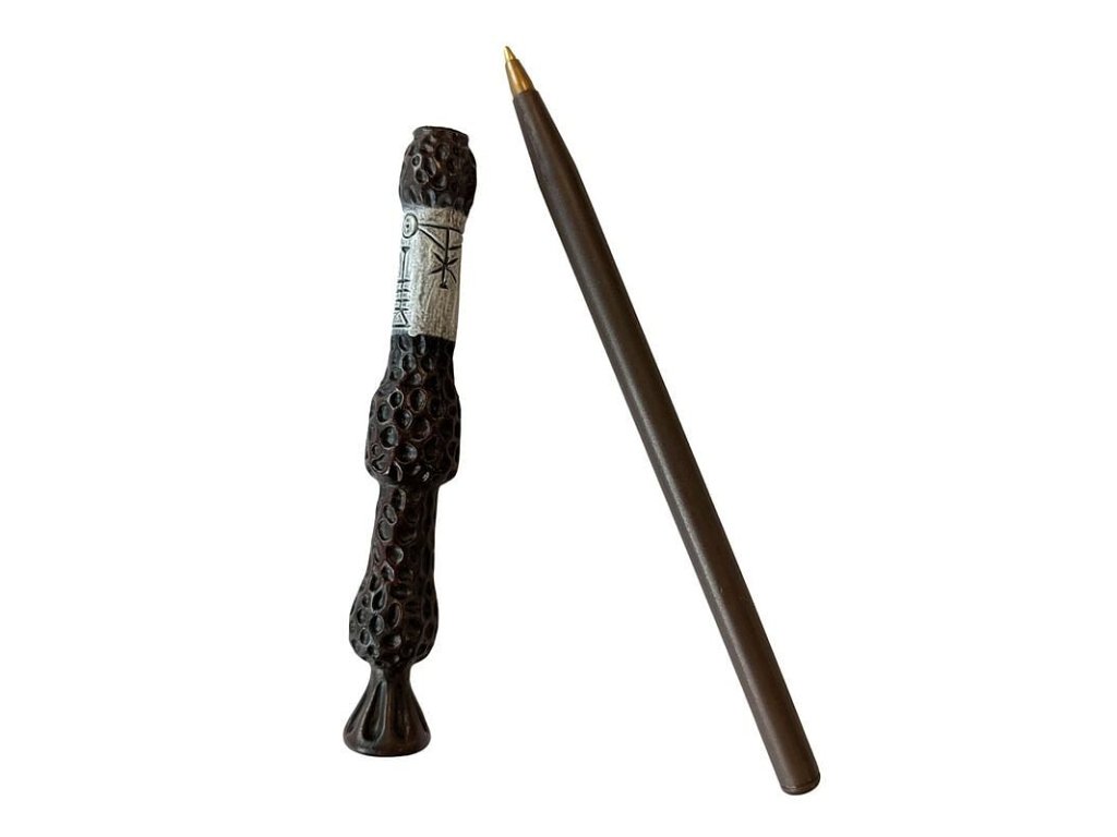 Pište jako Albus Brumbál! Krásná propiska v podobě kouzelnické hůlky slavného profesora z Harry Pottera, píše černě.