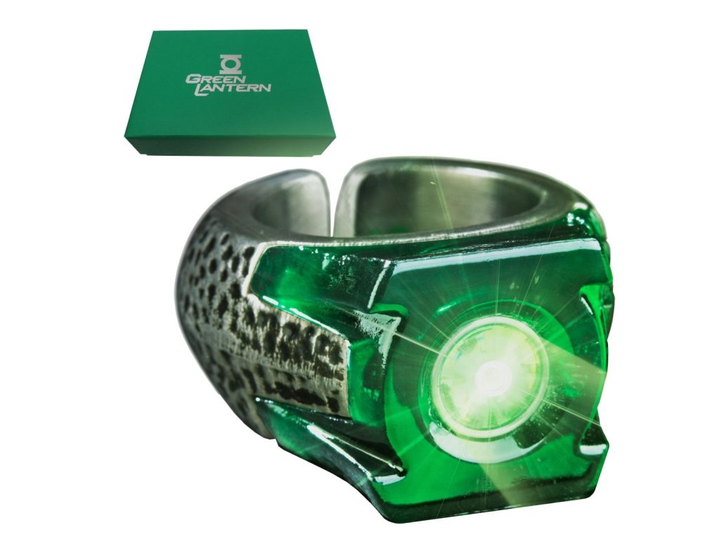 Replika prstenu Green Lantern z komiksů od DC Comics, často označovaného jako nejmocnější zbraň ve vesmíru, je vyrobena z plastového materiálu. Prsten svítí, je zapotřebí 1 ks baterie LR44 (je součástí balení). Dodáváno v pěkné zelené dárkové krabičce.