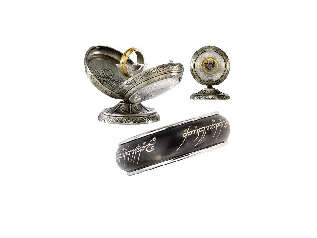 Prsten moci známý z knih či filmů Pán Prstenů a Hobit ve stylové černé barvě, se stříbrným lemem. Po obvodu prstenu jsou vyryty znaky. Prsten je kovový - nerezová ocel. Součástí je dárková krabička s motivy z filmu Hobit. K mání v různých velikostech. Odkazy Jak vybrat správnou velikost + tabulka velikostí