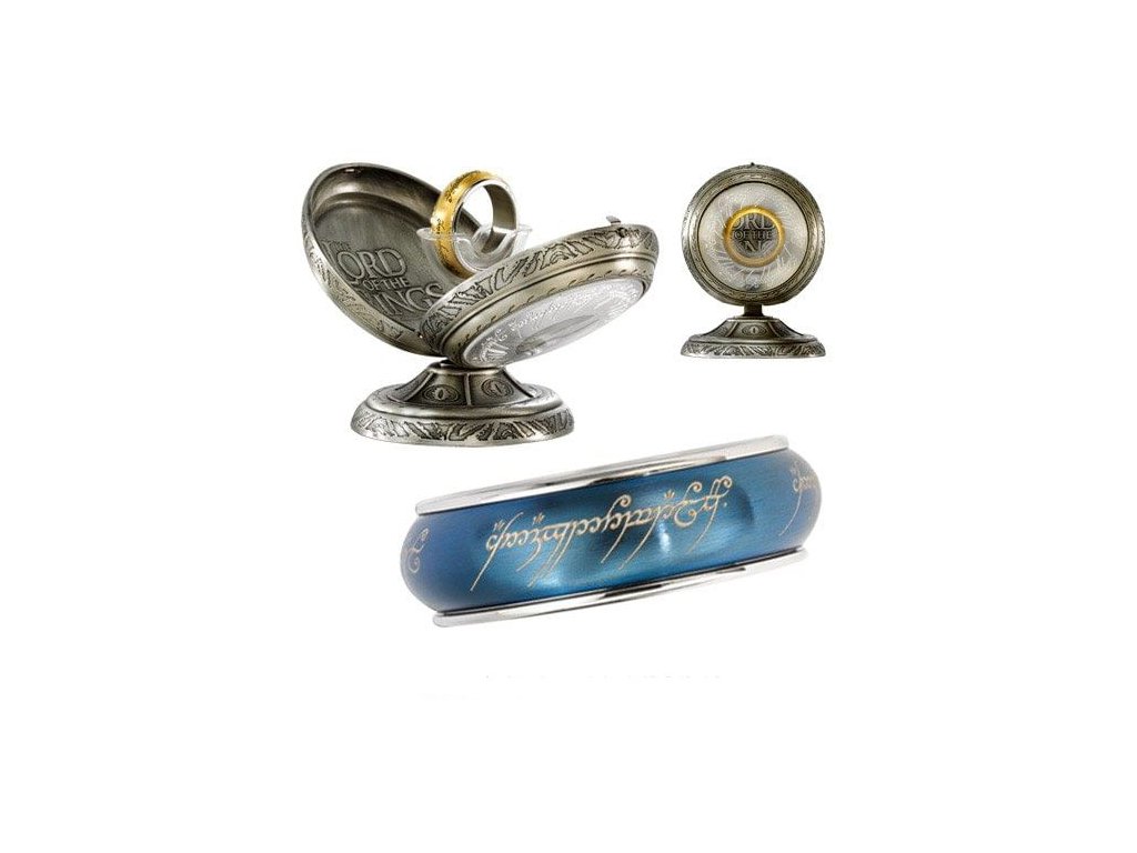 Prsten moci známý z knih či filmů Pán Prstenů a Hobit ve stylové modré barvě, se stříbrným lemem. Po obvodu prstenu jsou vyryty znaky. Prsten je kovový - nerezová ocel. Součástí je dárková krabička s motivy z filmu Hobit. K mání v různých velikostech. Odkazy Jak vybrat správnou velikost + tabulka velikostí