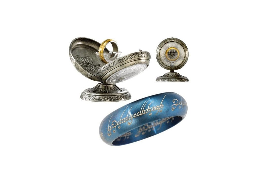 Replika jednoho prstenu z filmů Pán Prstenů a Hobit ve stylové modré barvě. Po obvodu prstenu jsou vyryty znaky. Prsten je kovový - nerezová ocel. Součástí je dárková krabička s motivy z filmu Hobit. K mání v různých velikostech. Odkazy Jak vybrat správnou velikost + tabulka velikostí