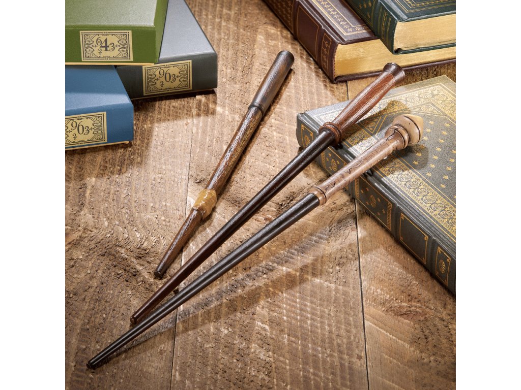 Jsi čaroděj, Harry! Chceš prožít své oblíbené okamžiky z prvních dvou filmů? Replika kouzelnické hůlky Harryho Pottera je dlouhá cca 33 cm a vyrobená ze syntetické pryskyřice. Součástí je stylová polstrovaná Ollivanderova krabička. Tuto hůlku zakoupil Harry u Ollivandera a předznamenala počátek úžasných dobrodružství, která spolu s přáteli v kouzelnickém světě prožil. The Noble Collection s hrdostí představuje kolekci Harry Potter První hůlky, která obsahuje trojici hůlek postav z prvních dvou filmů o Harrym Potterovi, než došlo ke změnám designu pro třetí film. Každá z nich je k dostání v krabičce od Ollivandera a ve sbírce jsou k dispozici tři: Harry Potter (právě prohlížíš), Hermiona Grangerová a Ron Weasley.