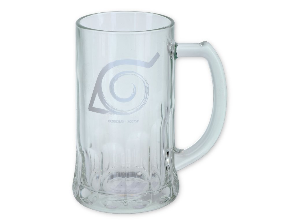Skleněný půlitr se symbolem vesnice Konoha z populární japonské manga série Naruto.
