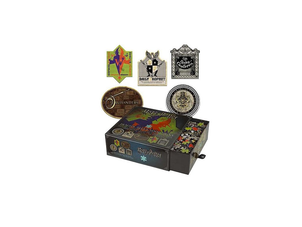 V krabičce se nachází 5 skládaček puzzle, z nichž každá čítá 200 dílků. Jednotlivá puzzle znázorňují symboly obchodů z Příčné ulice (Diagon Alley) z příběhů o Harry Potterovi.