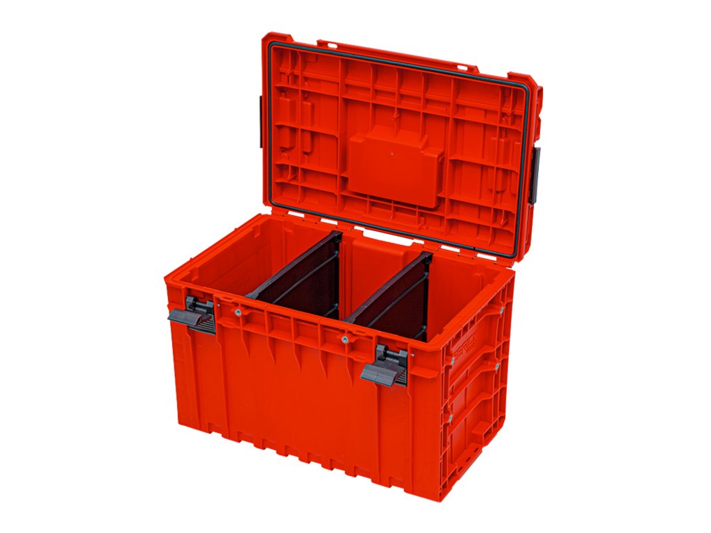 Plastový box je vyroben z ultra odolného plastu RED ULTRA HD, odolává mechanickému poškození i nízkým teplotám. Je vybaven pružným těsněním (IP66) pro ochranu proti prachu a vodě. Uvnitř se nacházejí dvě nastavitelné přepážky a dvě přihrádky pro efektivní organizaci nářadí. Víko Vario obsahuje konektory umožňující propojení s dalšími boxy systému Qbrick PRO. Díky své konstrukci je ideální pro bezpečné a přehledné uložení nářadí v dílně i na stavbě.