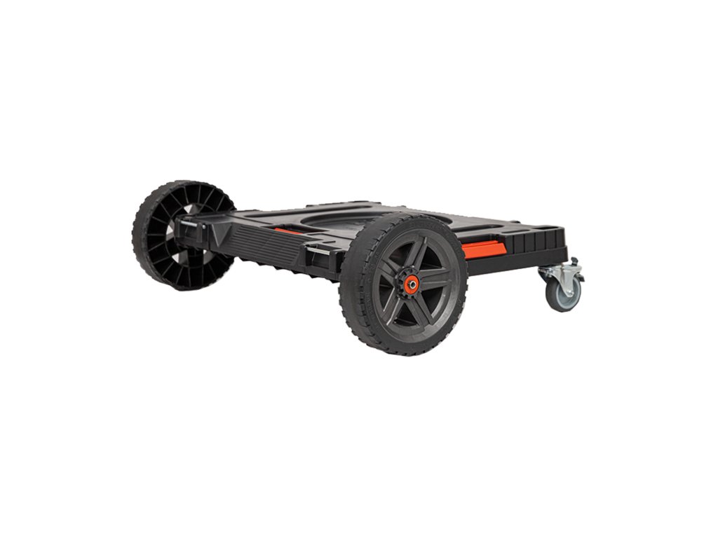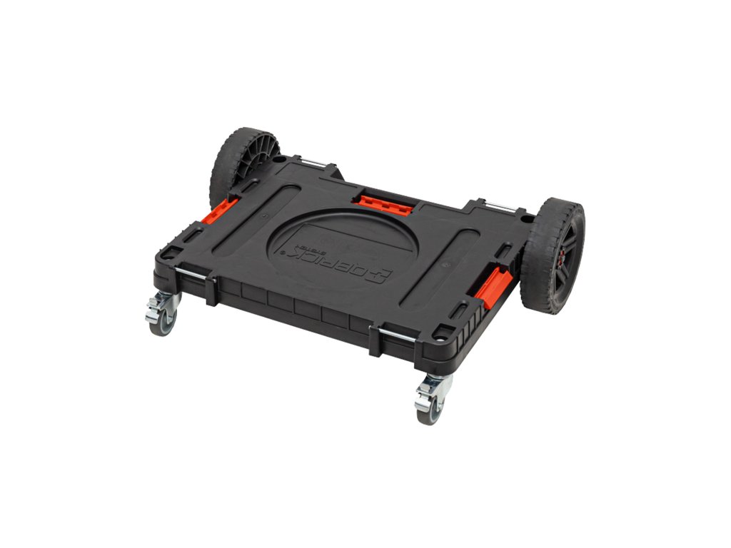 Podvozek si snadno poradí s nerovným terénem díky dvěma velkým 9” pogumovaným kolům a dvěma otočným kolečkům s brzdou. Tři polyamidové konektory umožňují připojení dalších modulů systému ONE. Pro pohodlné ovládání je vzadu umístěn schůdek. Má také vyhrazený prostor pro kbelík a čtyři montážní body pro upevnění nářadí či příslušenství. Maximální nosnost plošiny je 120 kg.