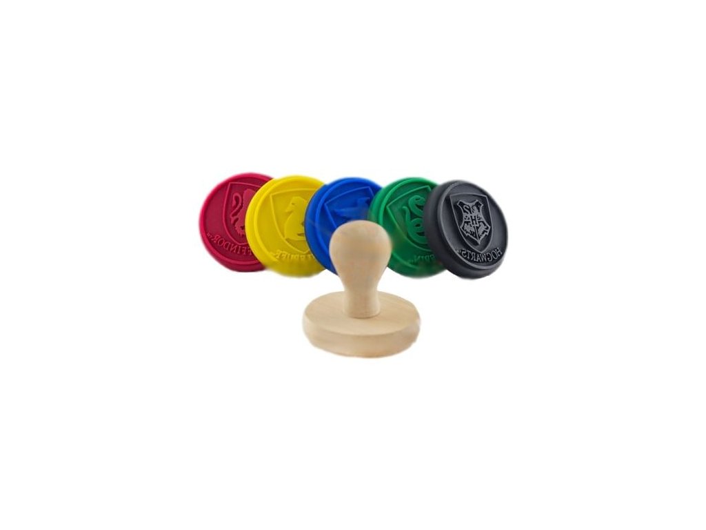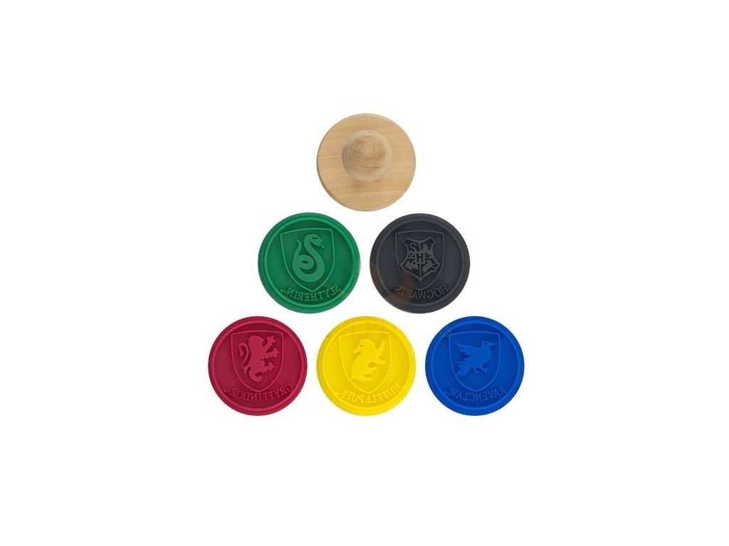 Sada obsahuje 5 silikonových razítek se znaky pěti kolejí škaly čar a kouzel v Bradavicích z Harryho Pottera.