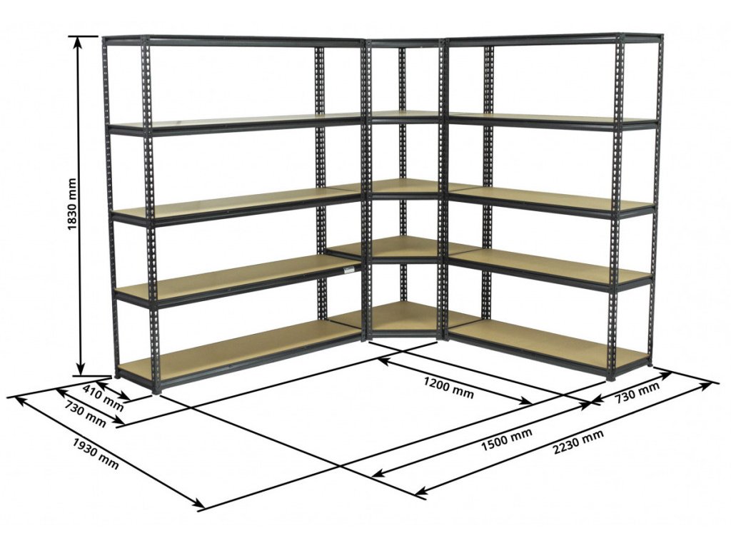 - Nosnost rohového regálu: 175 kg/police (při rovnoměrném rozložení zátěže).