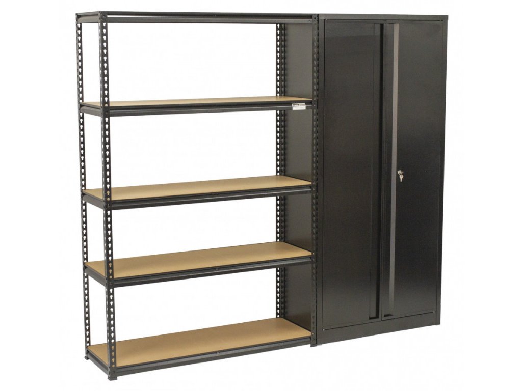 Sada policového regálu a dílenské skříně najde široké využití například v domácnosti, technické místnosti, dílně nebo garáži, ale také ve skladech nebo obchodech.