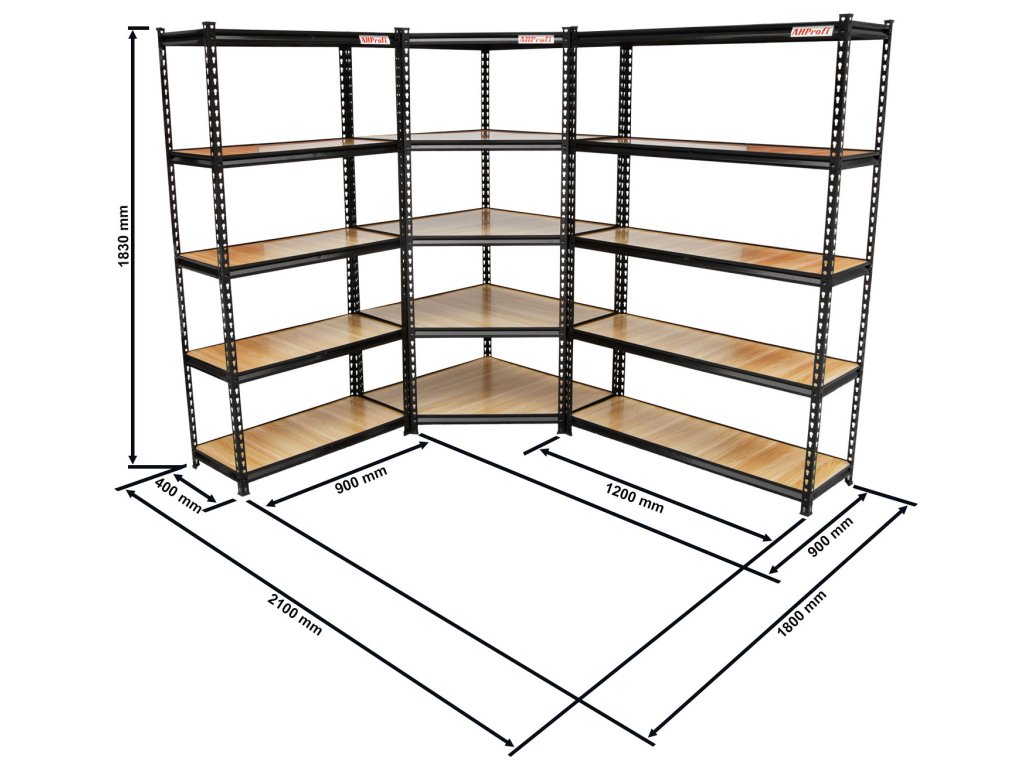 Rohový regálový systém STYLE - 2100 x 1800 x 1830 mm, 3 díly