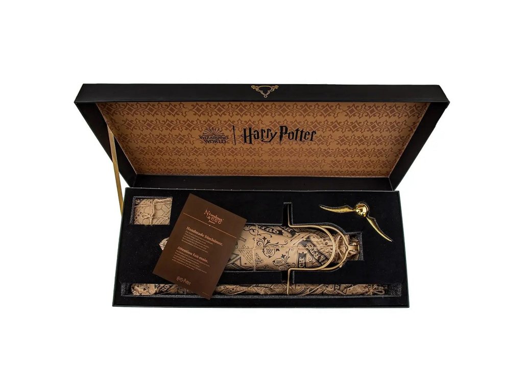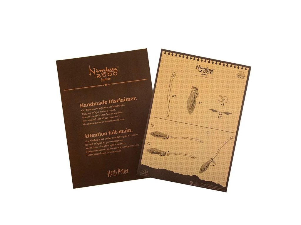 Jedinečná replika létajícího koštěte Harryho Pottera v měřítku 1:2 má magahonovou rukojeť s reliéfem Nimbus 2000 a proutí ze smuteční vrby. Součástí balení je také famfrpálová Zlatonka. Krásný dárek pro sběratele a fanoušky! Dodáváno ve sběratelské krabičce, každý kus je opatřen certifikátem pravosti.