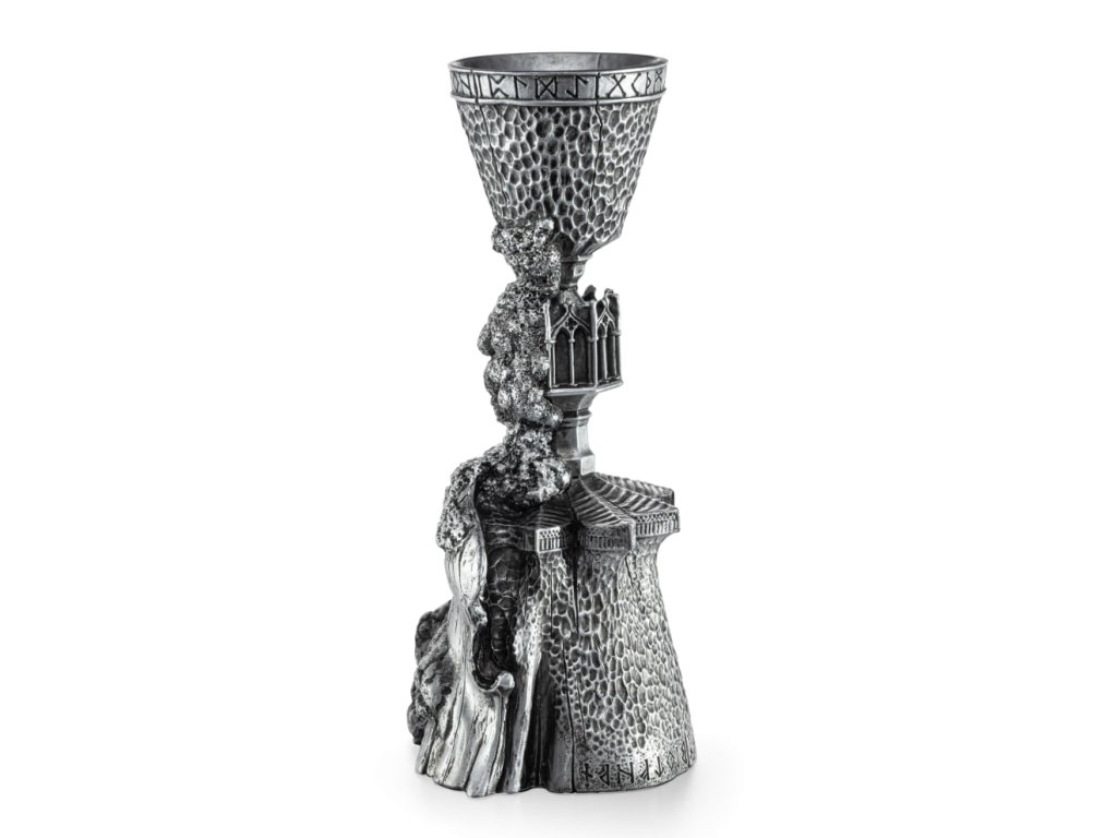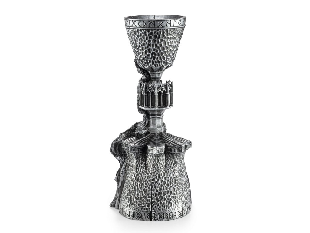 Doplň svou potterheadskou sbírku o tuto brilantní repliku Ohnivého poháru (Goblet of Fire), který v příbězích o Harry Potterovi vybírá účastníky do Turnaje tří kouzelníků. Struktura je velmi detailně zpracována, po obvodu kalichu a stojanu jsou vyryty runy, celá práce vypadá tak tajemně a autenticky, že by sám Brumbál žasnul. Pohár je vyroben z kombinace kovu a resinu, je vysoký 19 cm a je určen výhradně k dekoračním účelům. Replika není určena pro podávání nápojů (ve spodní části kalíšku je i drobná dírka, která pojímání tekutin znemožňuje).