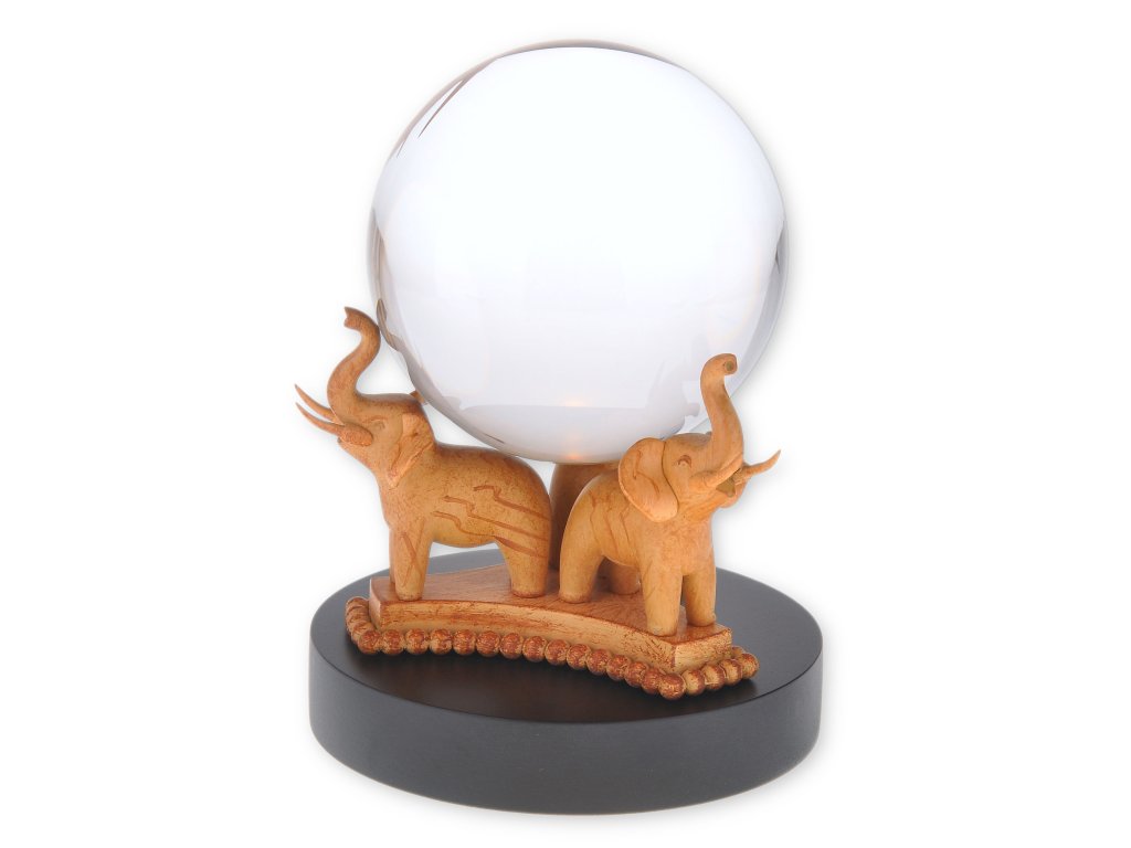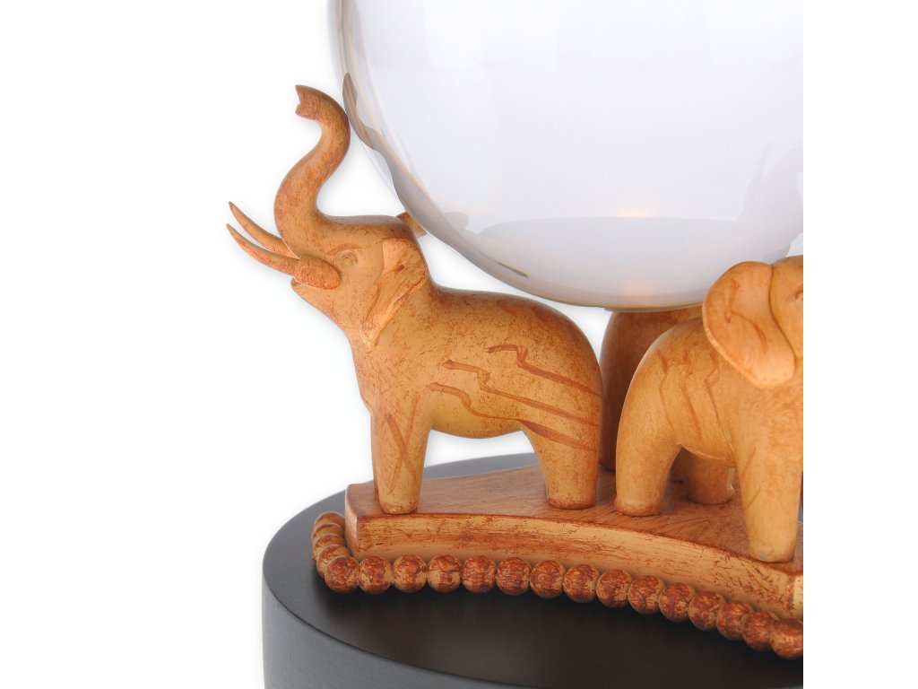 Toužili jste někdy nahlédnout do křišťálové koule profesorky Sybily Trelawneyové a spatřit výjev z vaší budoucnosti? Představujeme vám repliku orbitu, jaký jasnovidka používala k předpovídání budoucnosti ve filmu Harry Potter a vězeň z Azkabanu. Základnu tvoří podstavec se třemi slony se zdviženými choboty, mezi nimiž je umístěna průzračná skleněná koule. Jedná se o dekorativní výtvor, který bude ozdobou každé sbírky.