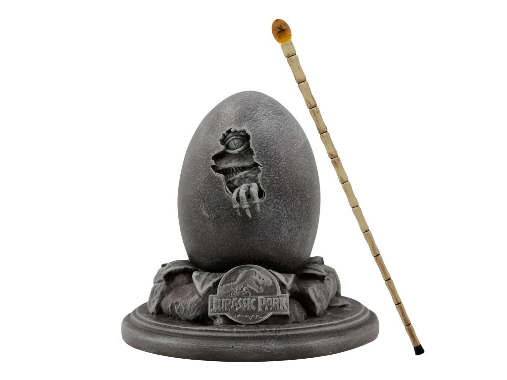Vítej v Jurském parku! Slavná atrakce právě slaví 30. výročí a John Hammond se s tebou rád podělí o svou hůl a zkamenělé dinosauří vejce. Hůl měří 18,9 cm a zdobí ji jantarová hlavice s komárem uvnitř - zdroj DNA pro oživení dinosaurů ve slavných filmech. Replika vejce měří 12 cm a imituje kamenný povrch. Zdobí ji také logo kultovních snímků. Součástí sady je stojánek pro vystavení hůlky. Jedná se o celosvětově limitovanou edici 1 993 ks, každý kus je individuálně očíslován.