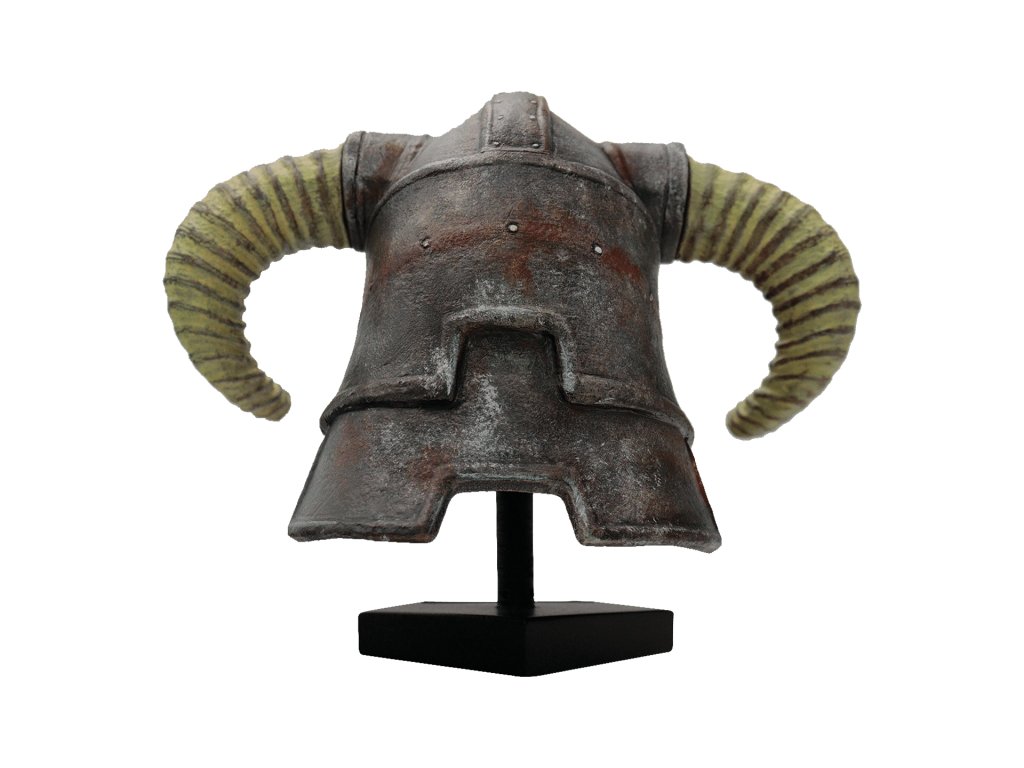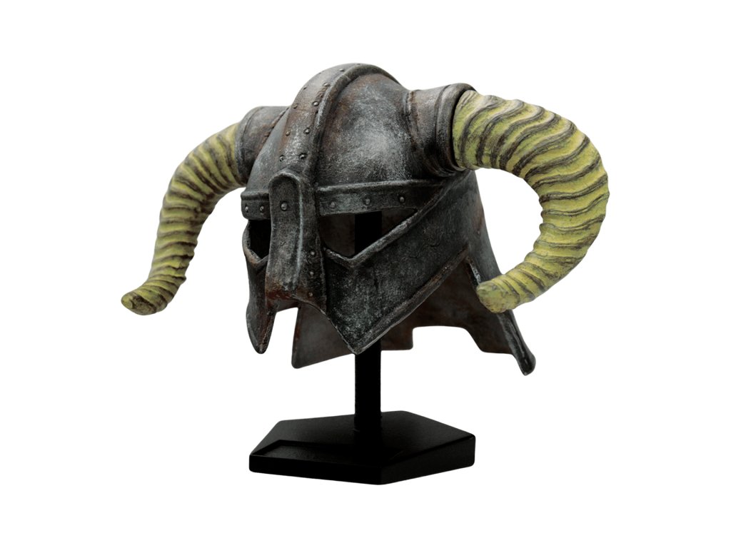 Laat Dovahkiin (neboli anglicky Last Dragonborn), bojovník s tělem smrtelníka a duší draka, jehož osudem je zničit zlého draka Alduina, je hlavním hrdinou hry The Elder Scrolls V: Skyrim a jeho železná přilba se stala synonymem pro tuto postavu. Tato zmenšená replika přilby z pryskyřice s ručně malovanými detaily a je celosvětově omezena na pouhých 5 000 kusů.Rozměry: Výška 148 mm, hloubka 188 mm, šířka 137 mm
