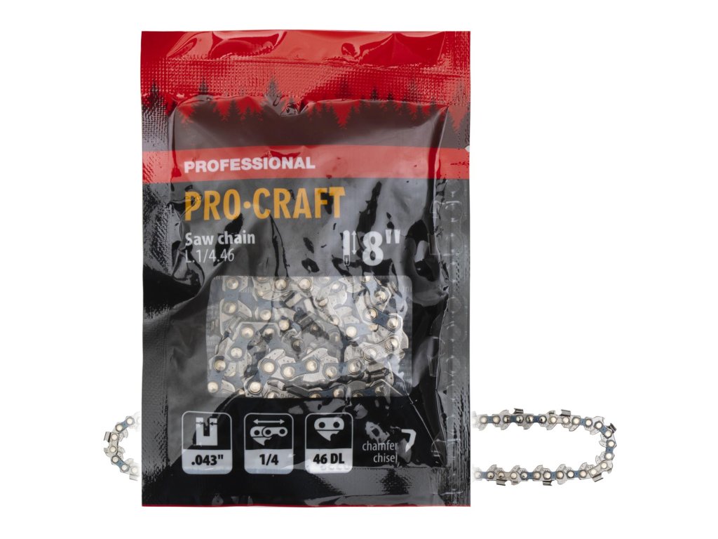 Pilový řetěz Procraft L.1/4.46 pro 8" lišty a rozteč 1/4". Ideální pro řezání. Obsahuje 46 článků, šířku drážky 1.1 mm. Vysoce odolný a efektivní.