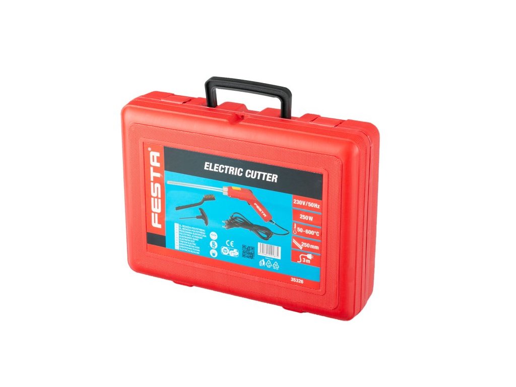- elektrická řezačka na polystyren v plastovém kufru včetně nože 25 cm a montážního i čistícího příslušenství
