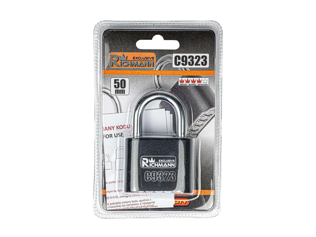 Visací zámek zabezpečený čtyřmístným kódem - bez klíče. Kód lze nastavit nezávisle a lze jej libovolně měnit pro zvýšení ochrany.