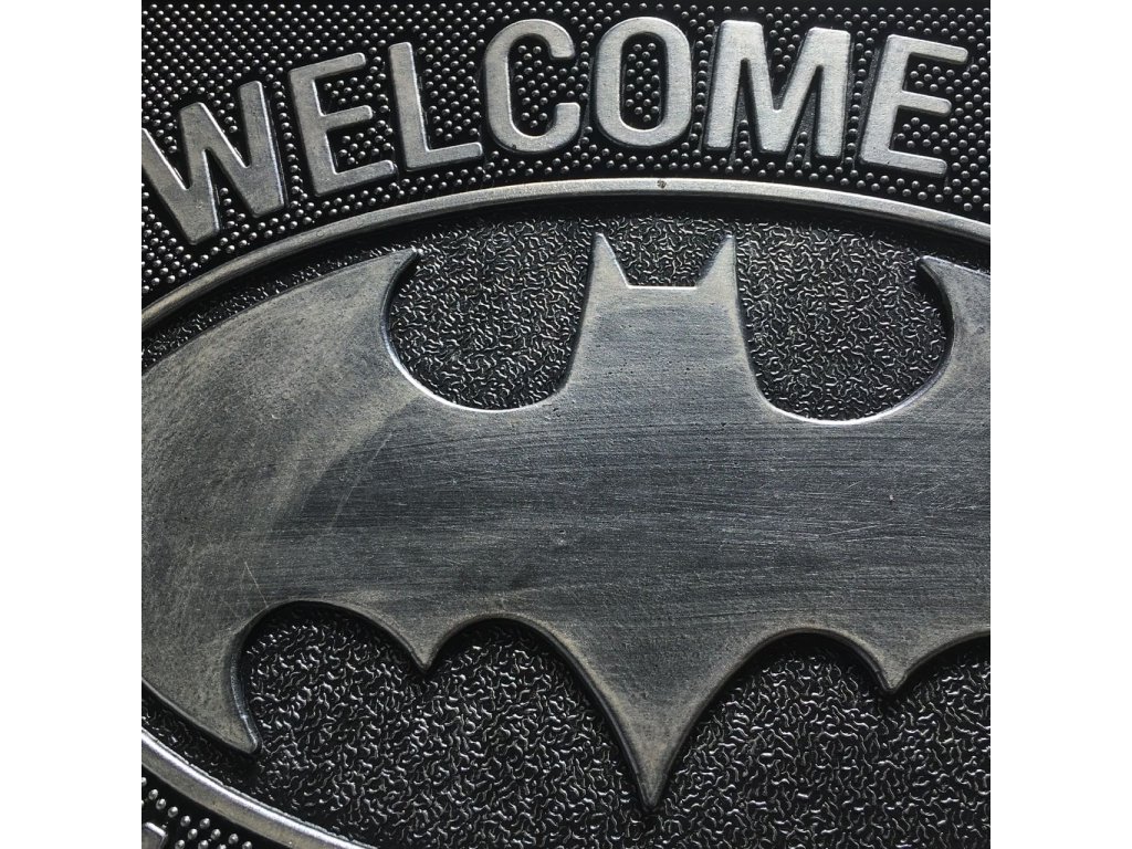 Pryžová rohožka s ikonickým logem Batmana z příběhů od DC Comics upozorní příchozí, že se právě chystají vstoupit do říše netopýřího superhrdiny!
