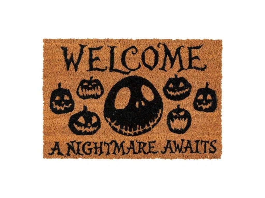 Originální rohožka inspirovaná kultovním filmem Ukradené Vánoce (The Nightmare Before Christmas) přináší tu pravou temně sváteční atmosféru hned ke vchodovým dveřím! Nápis A Nightmare Awaits varuje návštěvníky, že za těmito dveřmi to nebude jen o cukroví a koledách. Vyrobená z odolného kokosového vlákna, které zachytí špínu i prach. Rohožka je o velikosti 60 x 40 cm. Perfektní pro Halloween... nebo Vánoce? Prostě pro obojí! Zkrátka ideální rohožka pro ty, kdo milují temnou pohádku a nechtějí mít u prahu nudu!
