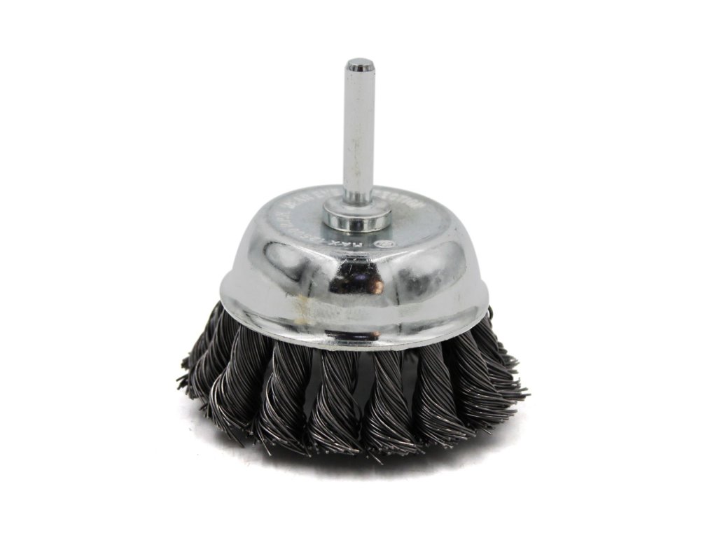 Rotační kartáč hrnkový copánkový do vrtačky pr. 75 mm, drát nerezová ocel | 07-06-3075