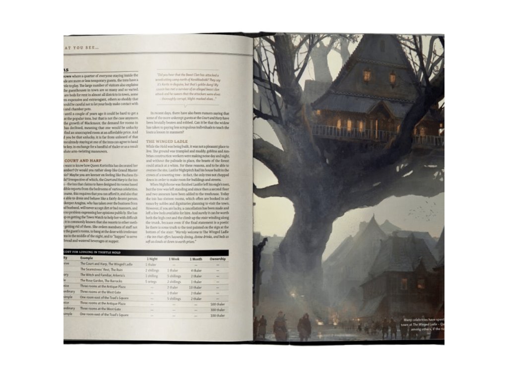 Vítej ve světě plném tajemství a dobrodružství, střetu kultur a ideálů, ve světě, který je neustále ohrožován temnotou Věčné noci. Tato kniha rozšiřuje lore a informace o prostředí uvedené v příručce Ruins of Symbaroum Gamemaster s Guide. Zabrousí hluboko do dávné historie herního světa a kromě obecných popisů lidí, míst a historických událostí poskytne Gamemasterovi spoustu dějových zápletek a tajemství spolu s neméně než sedmi podrobně popsanými dobrodružnými krajinami soustředěnými kolem ruin v lese Davokar. Kniha je v angličtině. The World of Symbaroum contains: A player’s section, introducing the game world’s main settlements – Thistle Hold, Yndaros and Karvosti – in great detail. An in-depth look at the main settlements’ history, memorable events, factions, conflicts, and establishments. A Gamemaster’s section describing what hides beneath the surface, with 18 historical secrets and 34 plot hooks. Seven adventure landscapes for characters of 5th to 10th level, complete with conflicts, events, maps, and colorful NPCs. Note that this book requires access to the Ruins of Symbaroum Core Setting Books – the Player’s Guide, Gamemaster’s Guide and Bestiary.