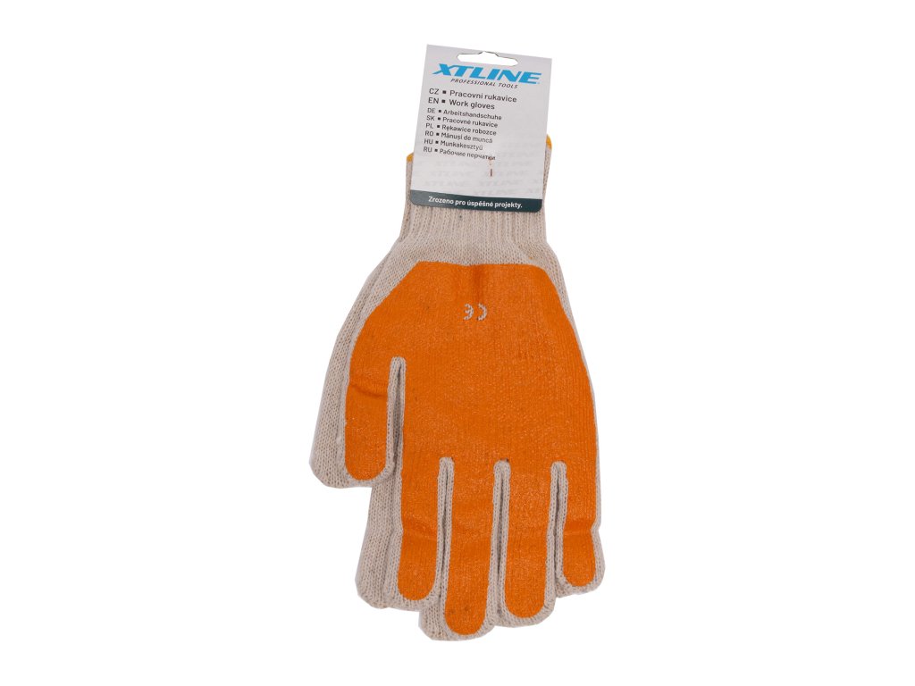 Bavlněné rukavice s pružným nápletem na zápěstí, polomáčené v barevném přírodním latexu.