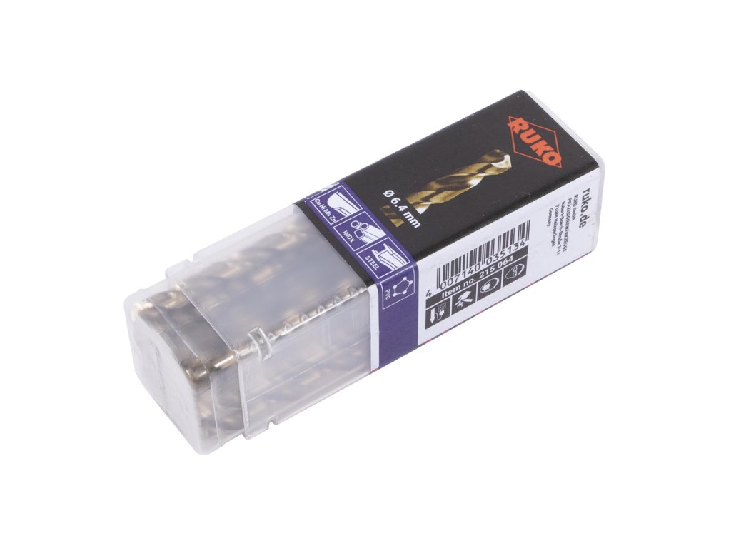 Hrot vrtáku: křížové broušení podle DIN 338. Vrcholový úhel: 130° Povrch: zlatohnědý jako HSS-G plus legování kobaltem. Podíl kobaltu zajišťuje vyšší odolnost tvrdosti za tepla. Oblasti použití: pro nelegované a legované ocele (s pevností do 1100N/mm2), ocele pro práci zatepla a za studena, ocele ke zušlechťování a cementování a také antikorozní a kyselinovzdorné ocele