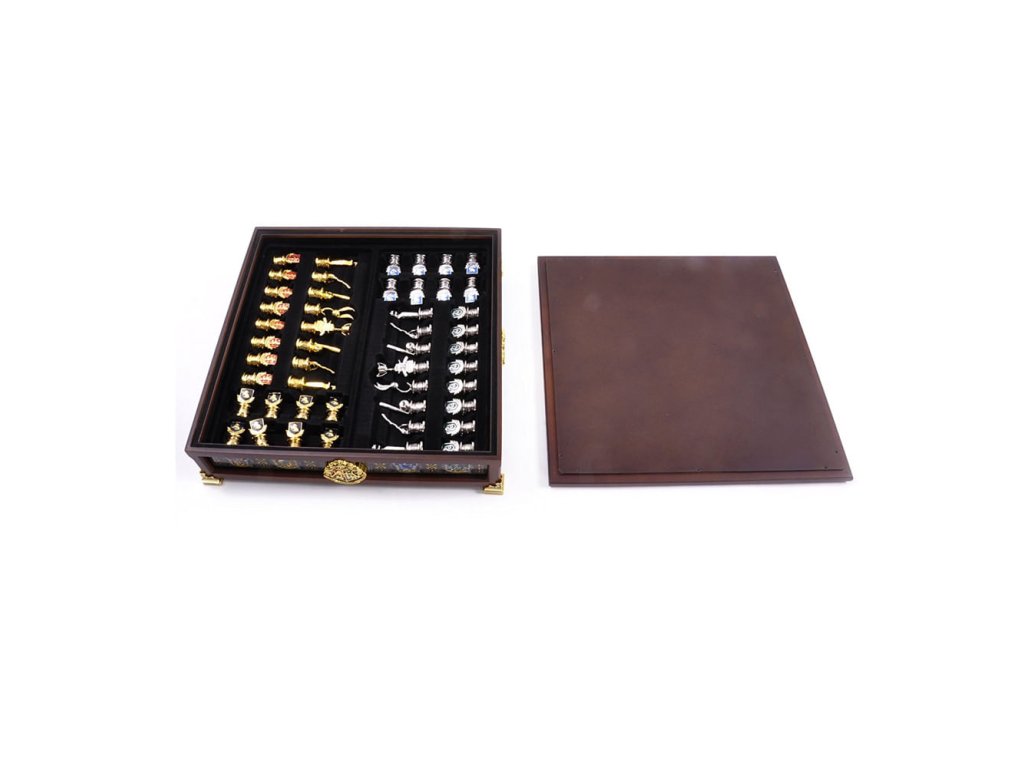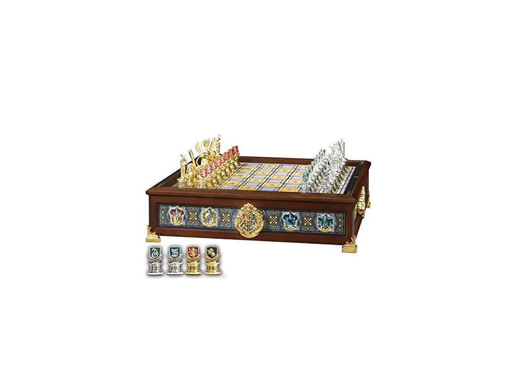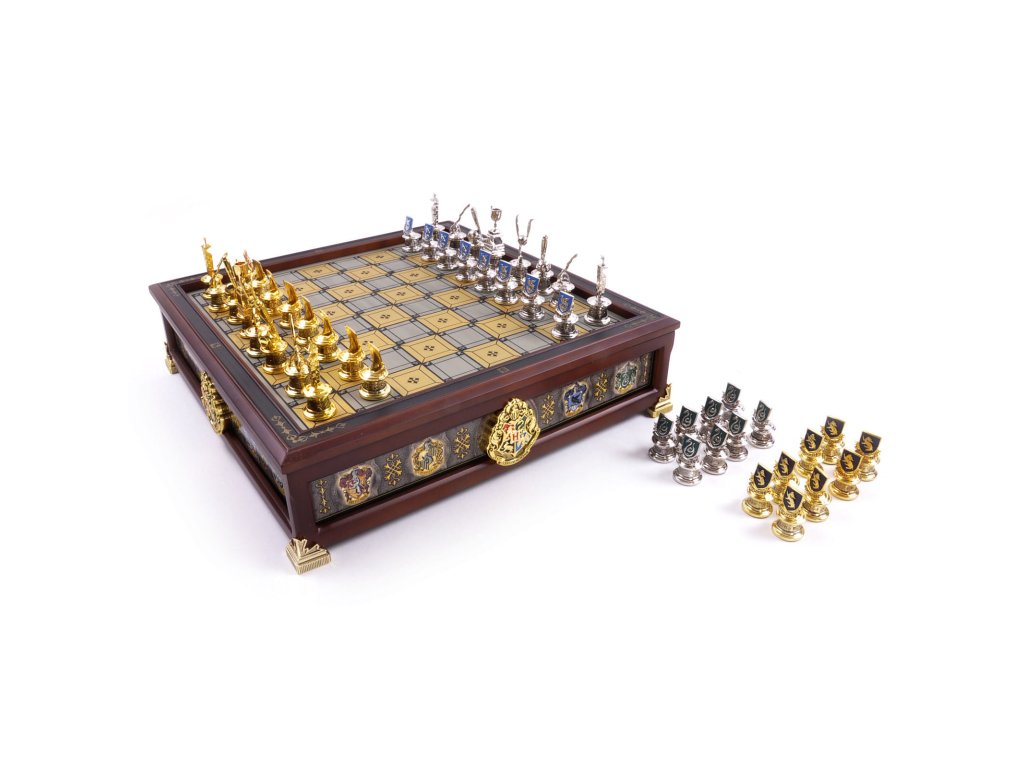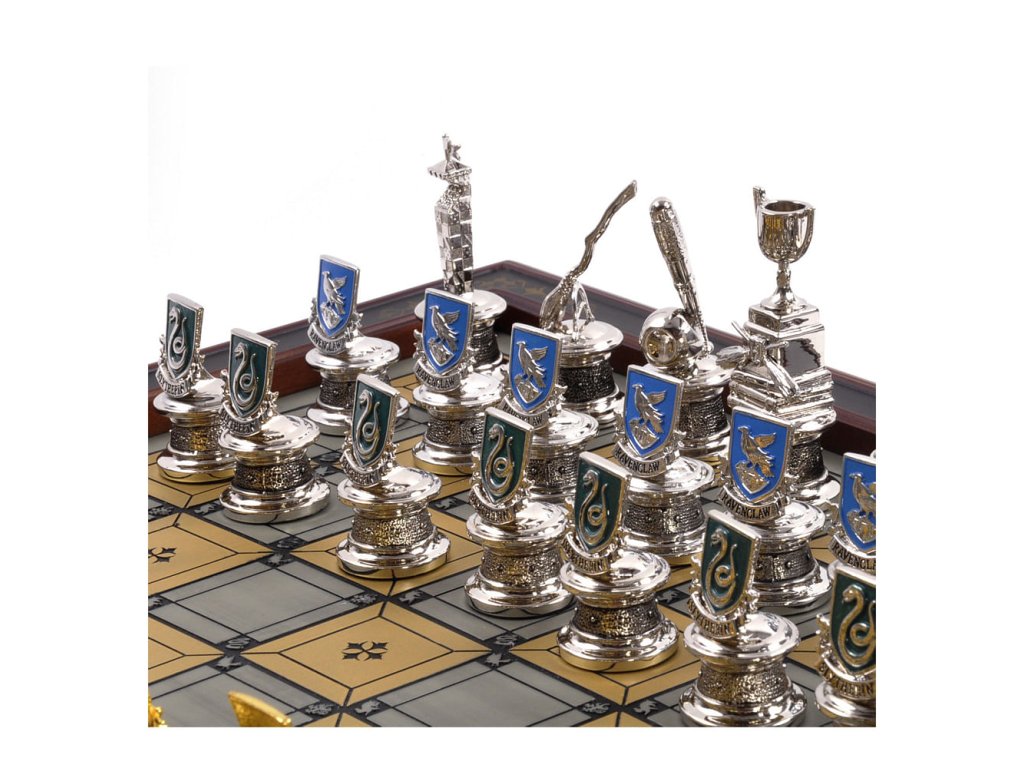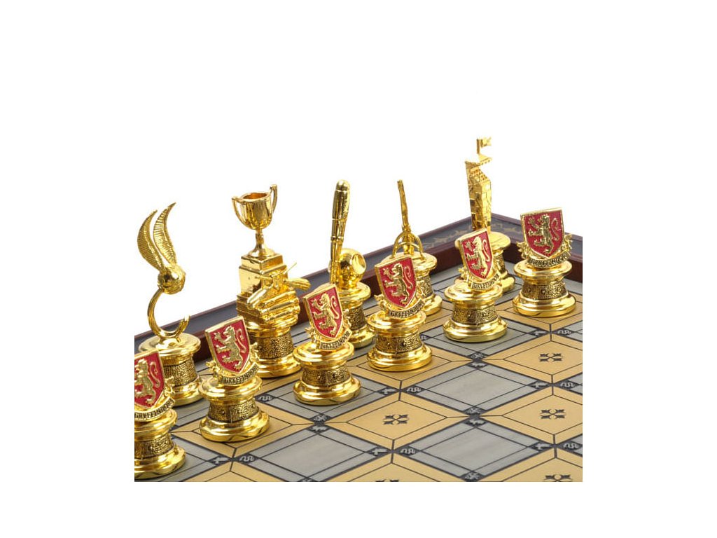 Působivá šachová souprava obsahující figurky z oblíbené sportovní hry famfrpál objevující se v literárním a filmovém zpracování Harryho Pottera. Sada umožňuje hrát za některou ze školních kolejí nacházející se v Bradavicích - za Nebelvír, Zmijozel, Mrzimor nebo Havraspár. Šachový komplet tvoří bytelná skříňka, která je sama o sobě uměleckým počinem. Je vyřezaná z kvalitního dřeva, s pozlacenými detaily. Po stranách ji zdobí různé ornamenty a detailně vyobrazené erby všech čtyř univerzitních kolejí. Samotné šachové figury představují různé vybavení a předměty typické pro famfrpálové zápasy. Každá z hracích figur je v podstatě soškou reprezentující vybranou kolej. Před vámi se tak v napínavém zápase utkávají například Zlatonka, Potlouk, Camrál, hrací hole či samotný pohár pro vítěze. Mistrovsky navržená šachovnice s figurami potěší všechny sběratele, nadšené fanoušky kouzelnického světa vytvořeného spisovatelkou J. K. Rowlingovou a sběratele jedinečných šachových kompletů.