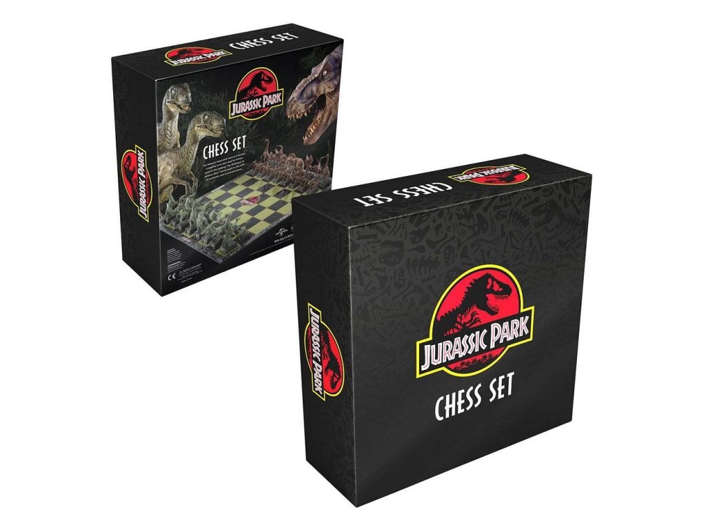 Krásné šachy s figurkami dinosaurů z Jurského parku, jedinečný dárek pro malé i velké fanoušky filmu a milovníky prehistorických ještěrů! Králem je samosebou Tyrannosaurus Rex, královnou pak Spinosaurus. Střelce tvoří Dilophosauři, jezdce Velociraptoři a věže Brachiosauři. Pěšci jsou reprezentováni Pteranodony. Sada obsahuje 32 figurek (o velikosti 5 až 10 cm) a šachovnici o rozměrech 47 x 47 cm.