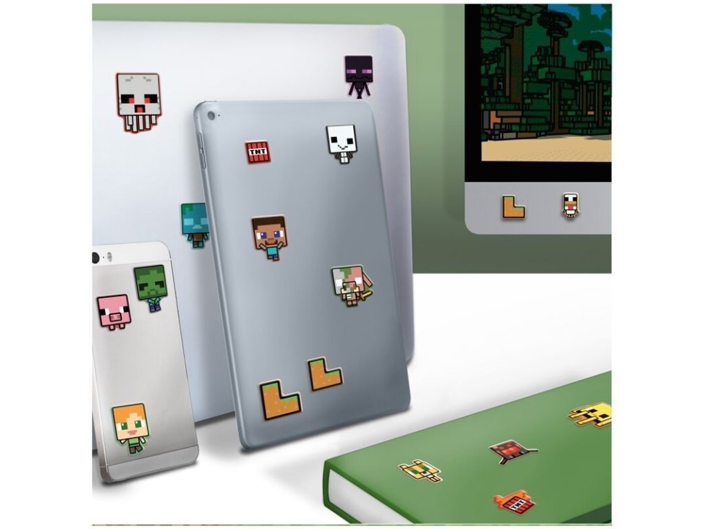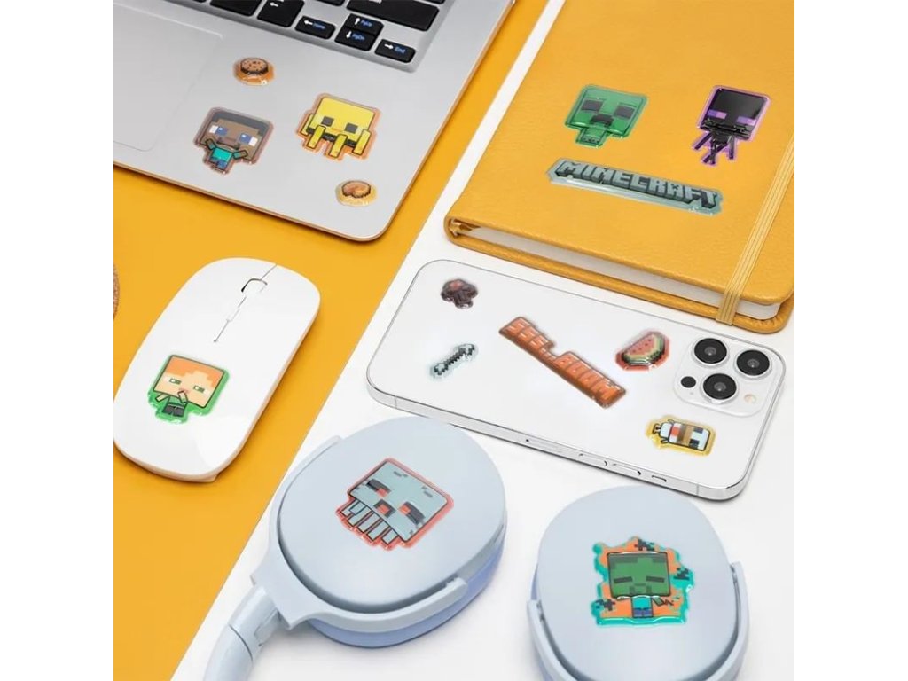 V sadě najdeš 2 archy 3D vinylových samolepek (celkem 60 ks) s motivy z kostičkového světa Minecraftu. Vytvářej vlastní herní příběhy se svými oblíbenými postavami Alex, Stevem nebo Creeperem a vyzdob si např. svůj smartphone, laptop nebo sluchátka!